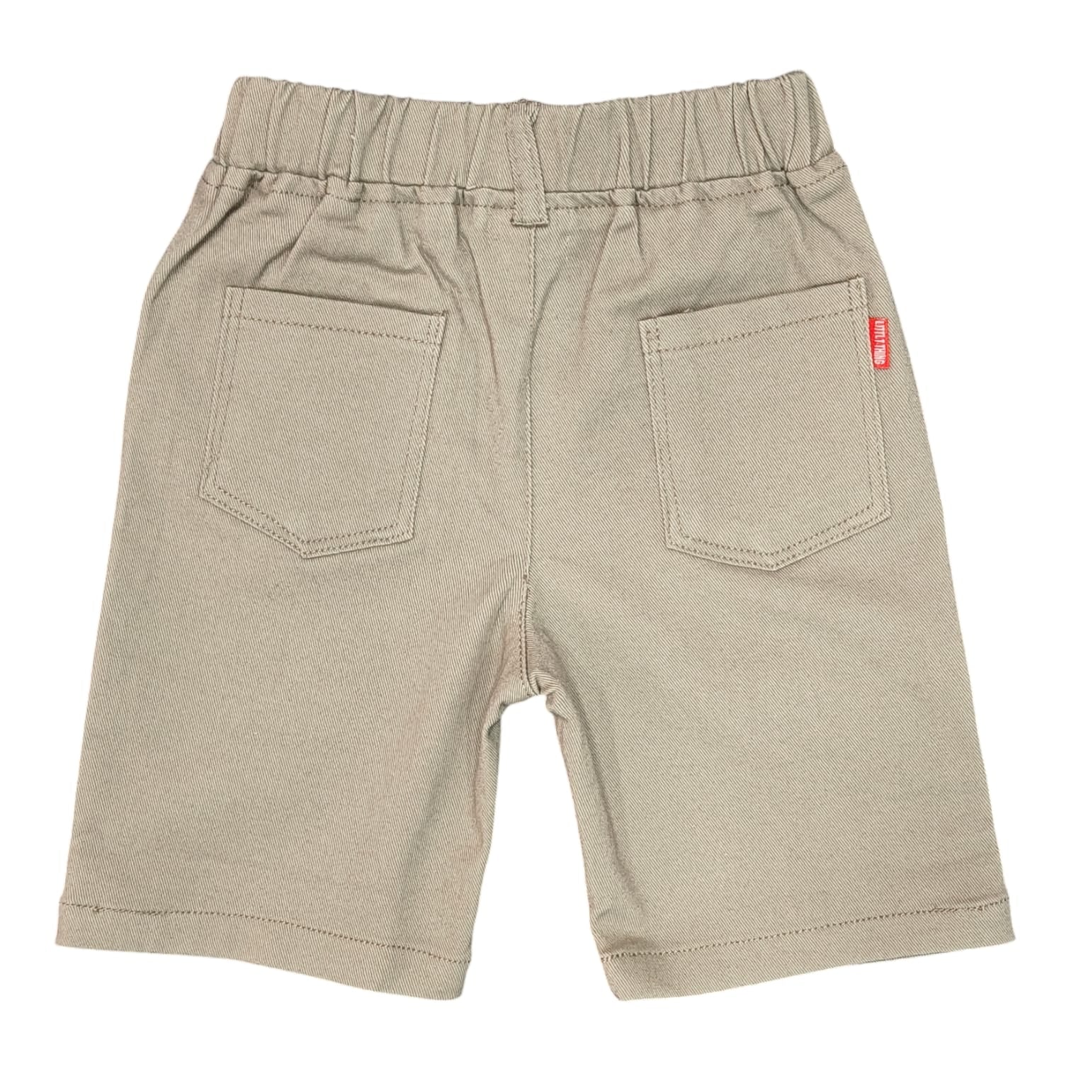 - Grey chino, feature a metallic button at the waistband, having two front pockets.