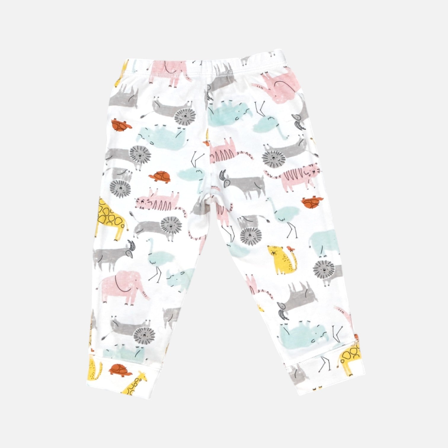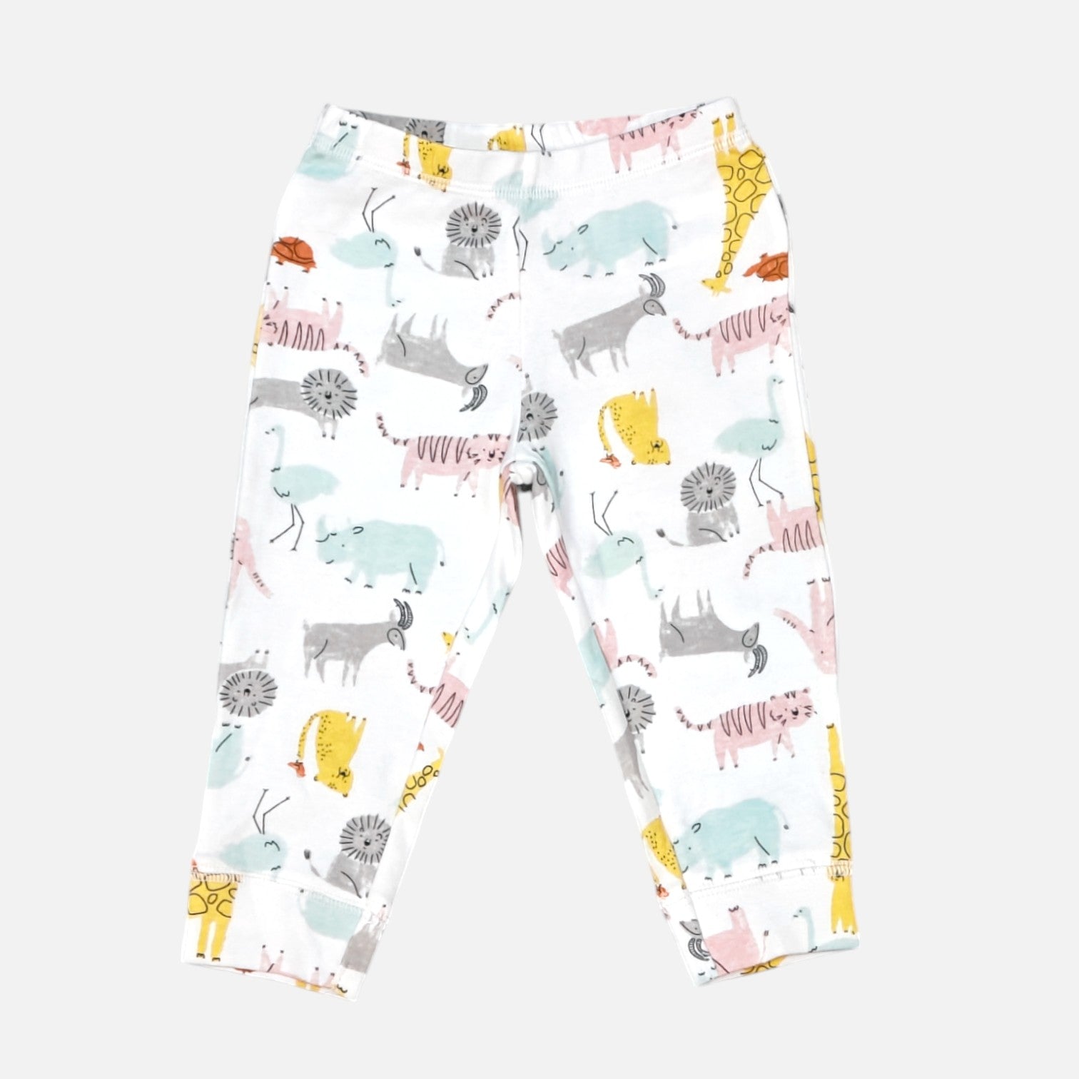 - These stylish white leggings feature a playful pattern of various animals scattered across the fabric.