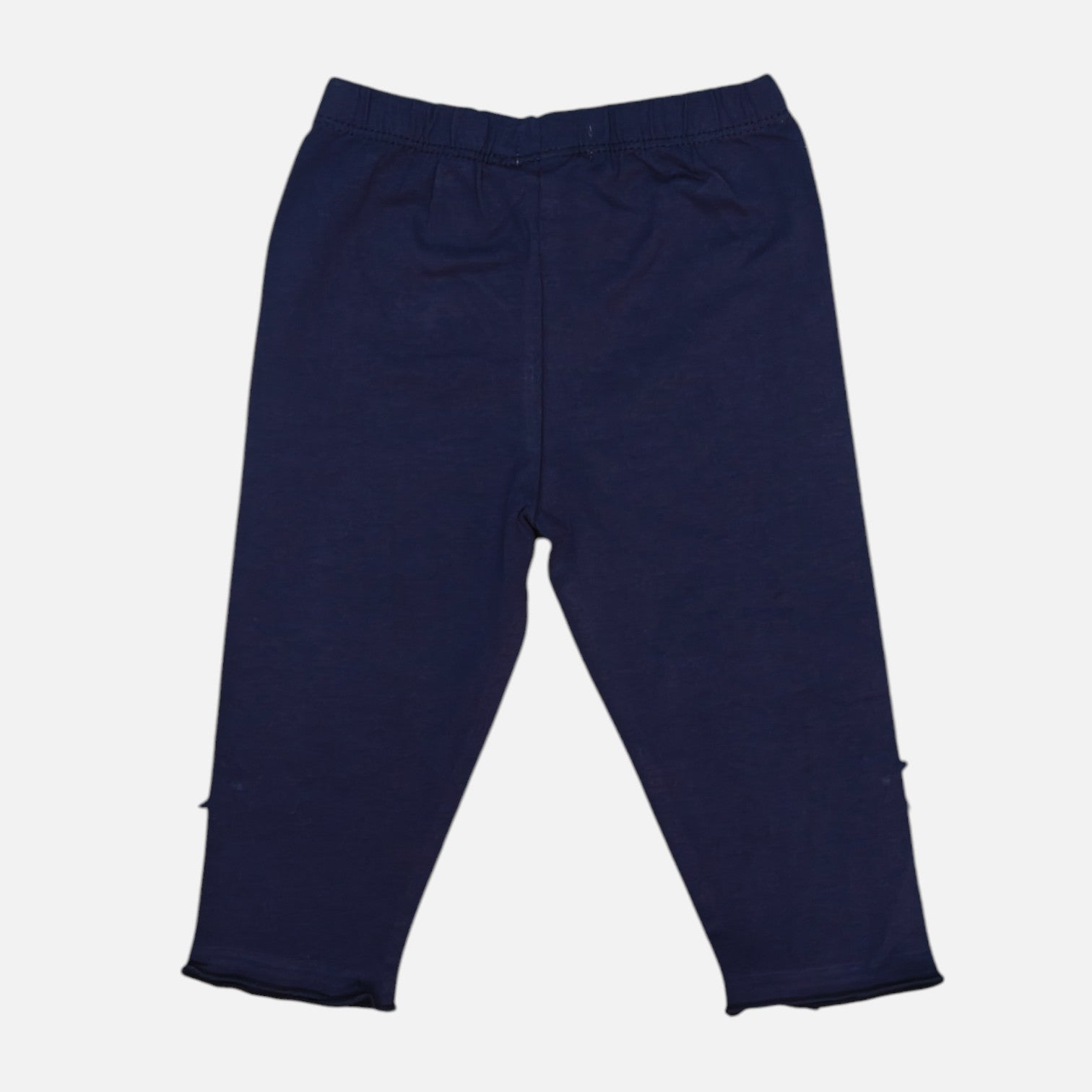 - The bottom of the leggings is slightly ruffled, adding a decorative touch. The waistband appears to be elastic, providing a comfortable fit.
