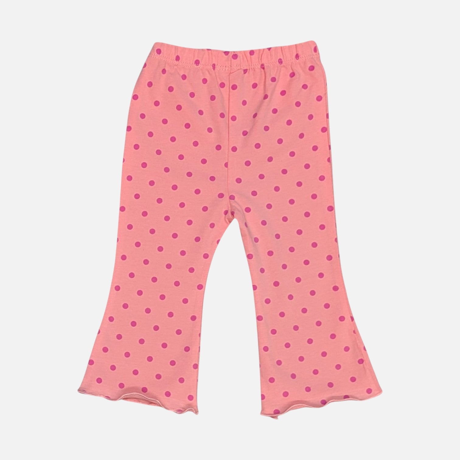 - These delightful pink pants, crafted with an elastic waistband for a comfortable and secure fit, these pants are adorned with adorable, dark pink polka dots.