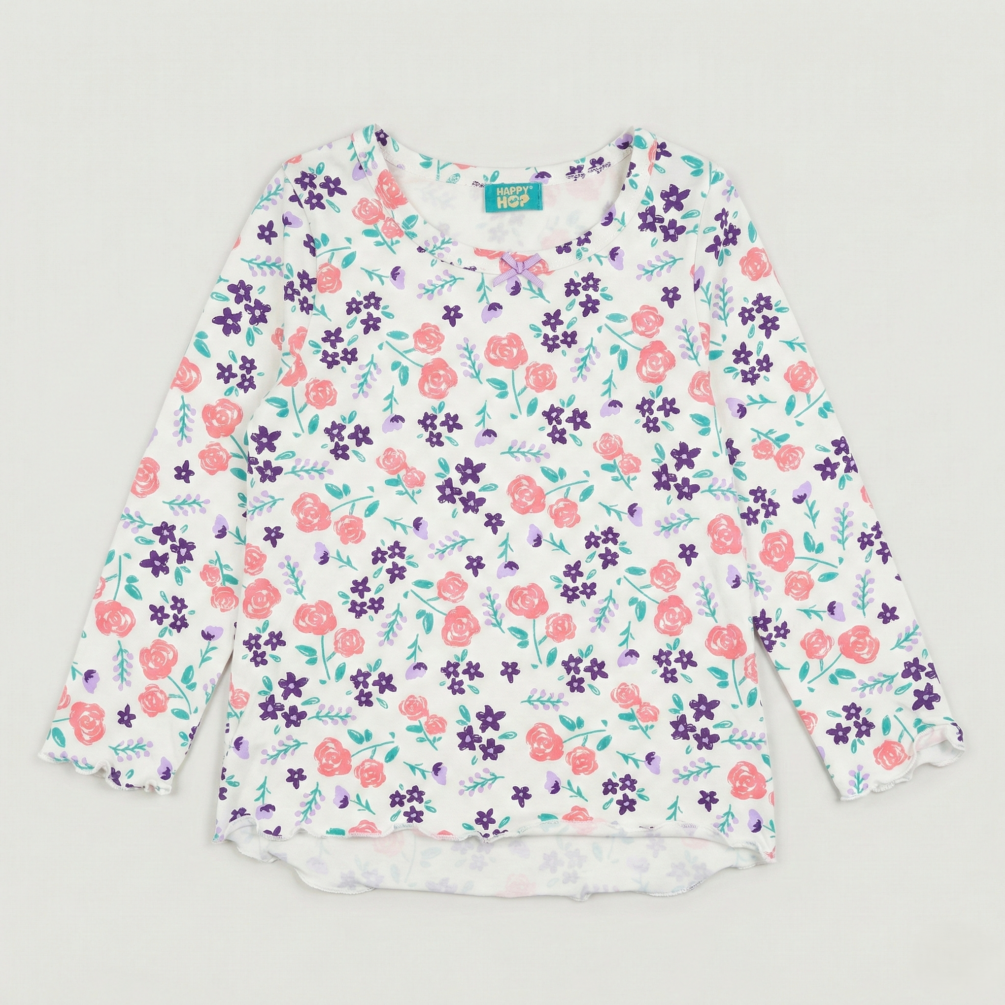 - White full-sleeve top with a calm floral print adds a sweet touch, while the easy pull-on neckline makes dressing quick and fuss-free for parents.