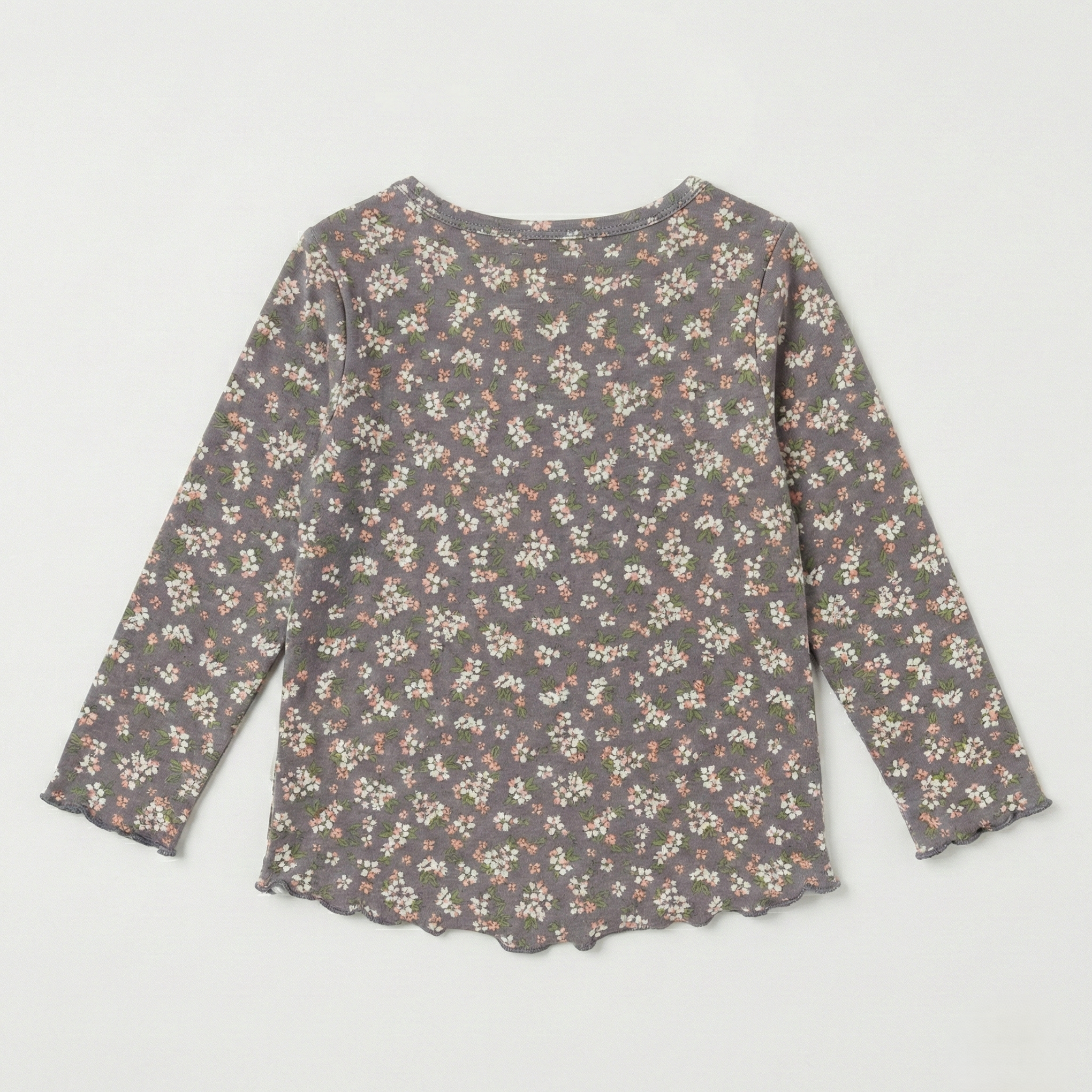 - Grey full-sleeve top with a calm floral print adds a sweet touch, while the easy pull-on neckline makes dressing quick and fuss-free for parents.