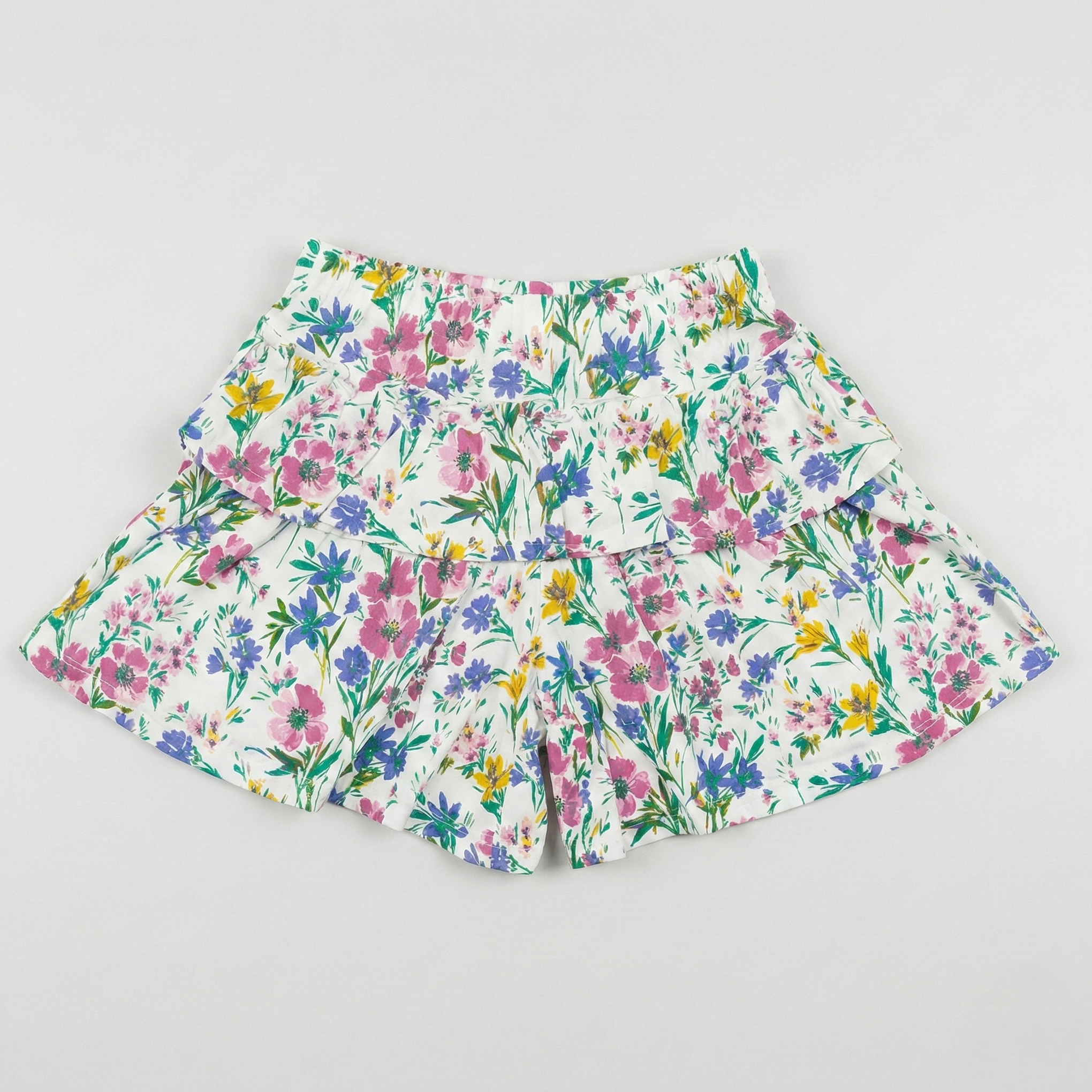 - This White Skort elevate your casual wardrobe with a vibrant all-over floral print inspired by blooming meadows. Featuring a high-waisted design and an elastic waistband, these skirt provide a comfortable and flattering fit.