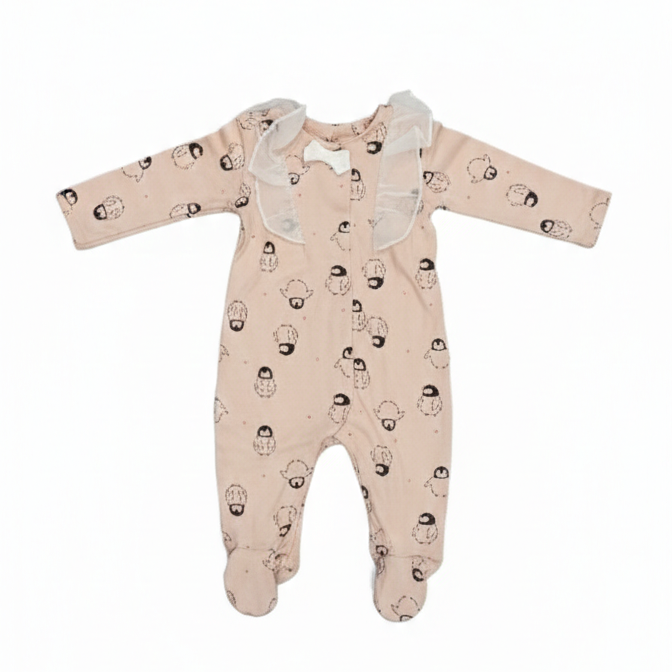 Peach Penguin Print Frill Rompers (Footer)